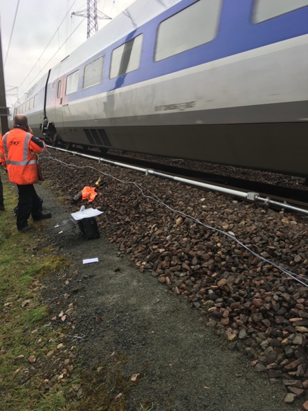 On mesure les déplacements verticaux et horizontaux de la voie par rapport à ce fil